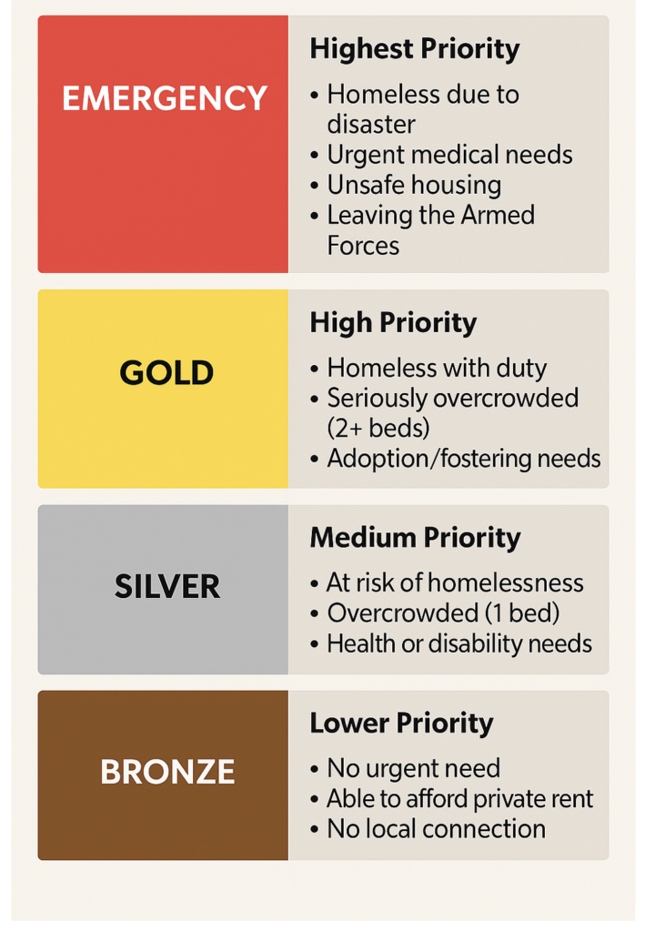 - Homes are allocated to those with the highest need first.